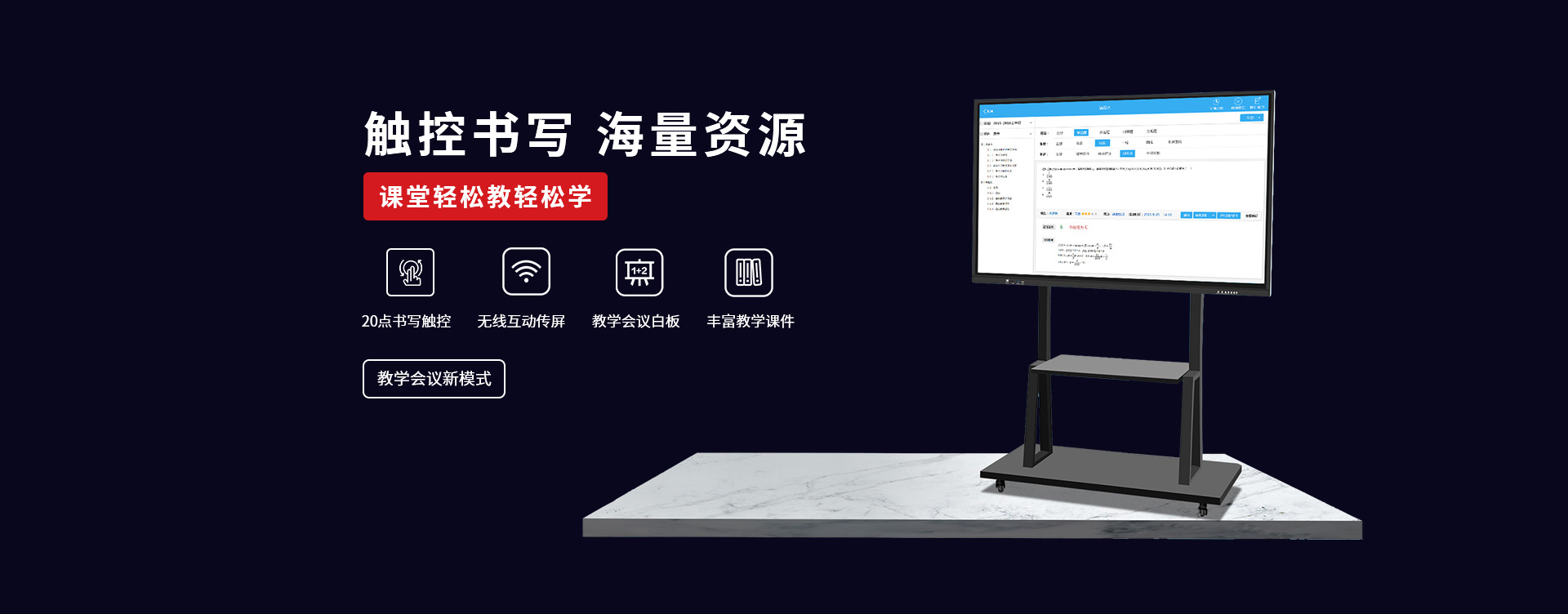 〔教育智慧黑板〕 是新一代教學(xué)顯示設(shè)備,具有高清顯示、高精度觸摸操作應(yīng)用,黑板書寫教學(xué)功能與一身;內(nèi)置安卓、windows系統(tǒng),可滿足教學(xué)不同的應(yīng)用軟件使用;純平面書寫黑板,適應(yīng)粉筆,無塵粉筆、水性粉筆書寫,適合不同環(huán)境應(yīng)用;觸摸切換書寫黑板與屏幕顯示,可讓老師快速進(jìn)行教學(xué)應(yīng)用切換;純平面外觀,解決傳統(tǒng)推拉黑板的笨重,復(fù)雜的結(jié)構(gòu)特點(diǎn),大大提升了教師授課的體驗(yàn)感和演示效果。